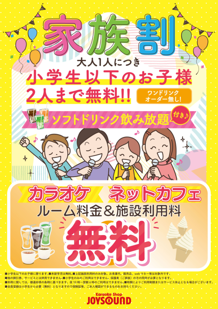 家族と一緒にご来店でもっとお得に!